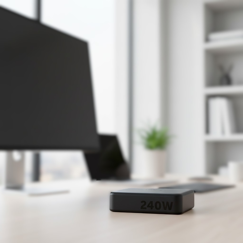 O EC 40 foi projetado para se integrar perfeitamente à sua mesa. Com o suporte vertical incluso, ele ocupa um espaço mínimo e mantém as portas sempre acessíveis. O cabo de alimentação de 1,5 metro oferece flexibilidade para posicioná-lo onde for mais conveniente.