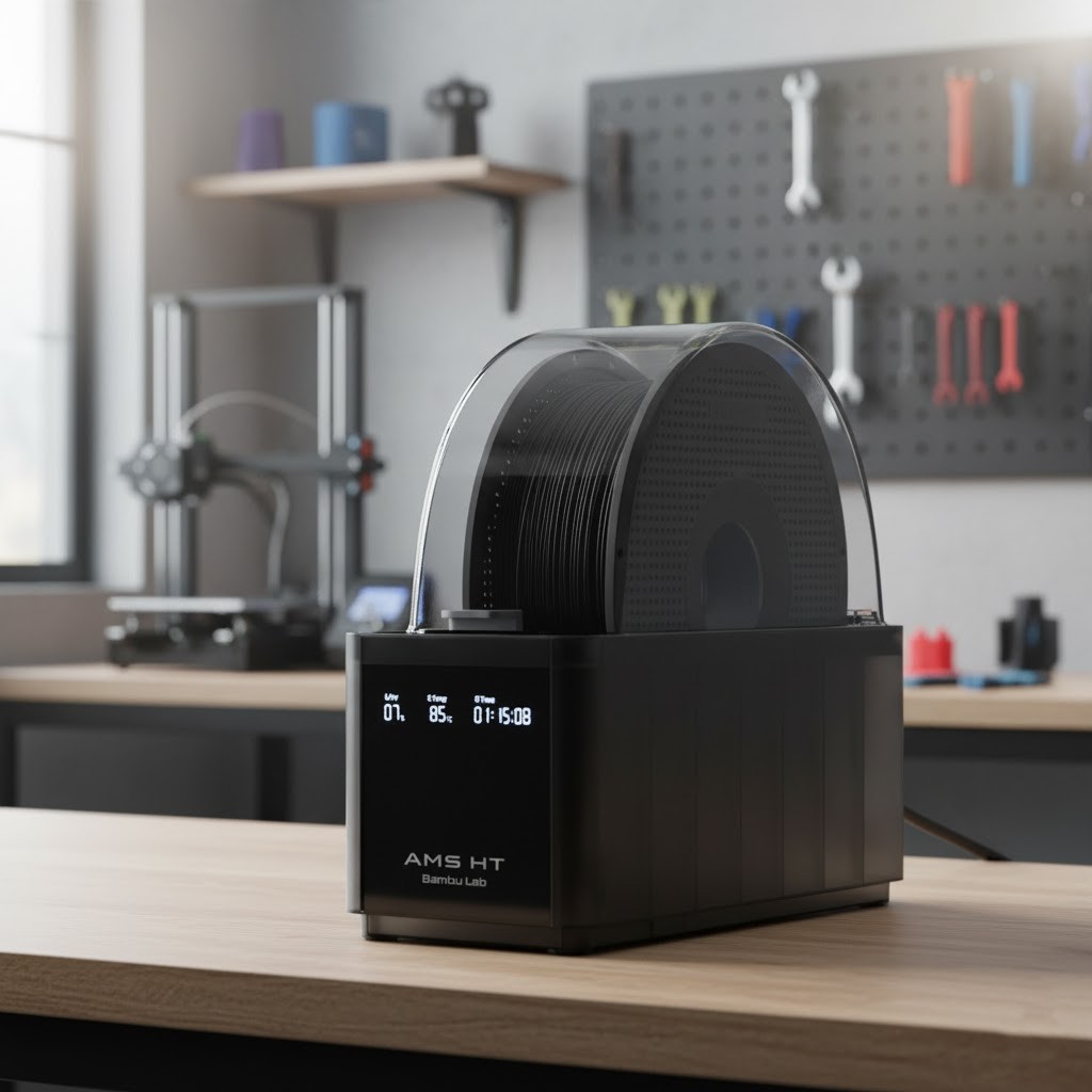 Ao manter materiais como PA-CF e PC secos e aquecidos, o AMS HT garante uma extrusão consistente, excelente adesão entre camadas e peças finais com as propriedades mecânicas e o acabamento superficial que você espera de um material de engenharia.