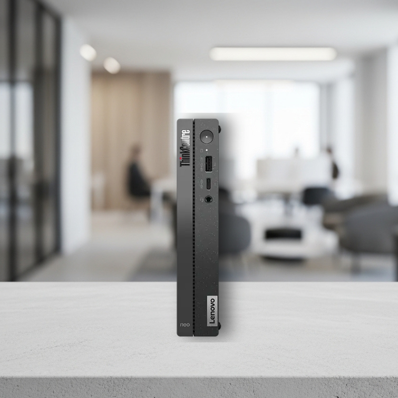 A maior vantagem do formato Tiny é a sua versatilidade. Com um suporte VESA (vendido separadamente), o ThinkCentre Neo 50q pode ser montado diretamente na parte de trás de um monitor, transformando seu setup em uma solução elegante e sem cabos aparentes, similar a um All-in-One.