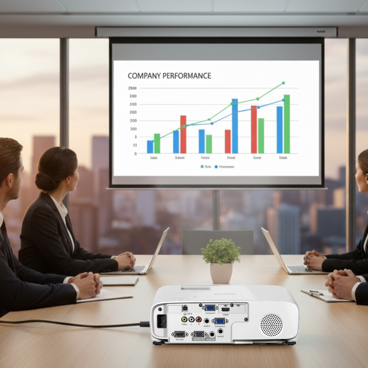 Com 3600 Lumens e tecnologia 3LCD, o E24 é a solução perfeita para apresentações vibrantes e claras em salas de aula ou escritórios bem iluminados.